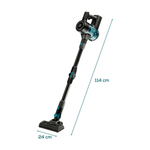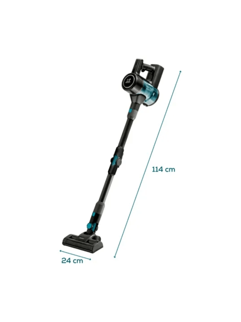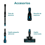 Especificaciones Técnicas: • Potencia del Motor: 400W sin escobillas • Batería: 22.2V y 2000mAh de iones de litio • Velocidades: 3 • Tiempo de Trabajo: Potencia Máxima: 12 minutos Potencia Mínima: 47 minutos • Tiempo de Carga de la Batería: 5 horas • Poder de Succión: Potencia Máxima: 30.4 KPA Potencia Mínima: 10.7 KPA • Nivel de Ruido: Potencia Máxima: 76 dB Potencia Mínima: 70 dB • Capacidad del Tanque de Polvo: 1 Litro