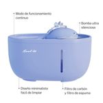 • Modo de funcionamiento continuo • Luz de alerta de nivel de agua bajo • Bomba ultra silenciosa • Filtro de carbón y filtro de espuma • Diseño minimalista fácil de limpiar • Para perros y gatos • Capacidad del tanque 2L (6 días de agua para un gato adulto aprox • Garantía: 6 meses • Entrega: 10 a 15 días hábiles.