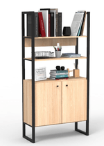 La estantería Steel con 2 puertas y estantes es un mueble ideal para organizar y almacenar diversos objetos en cualquier ambiente de tu hogar u oficina. Cuenta con una estructura resistente de hierro mate de 2,2cm de espesor y un cuadro de 3x3cm que le brinda una gran estabilidad y durabilidad.