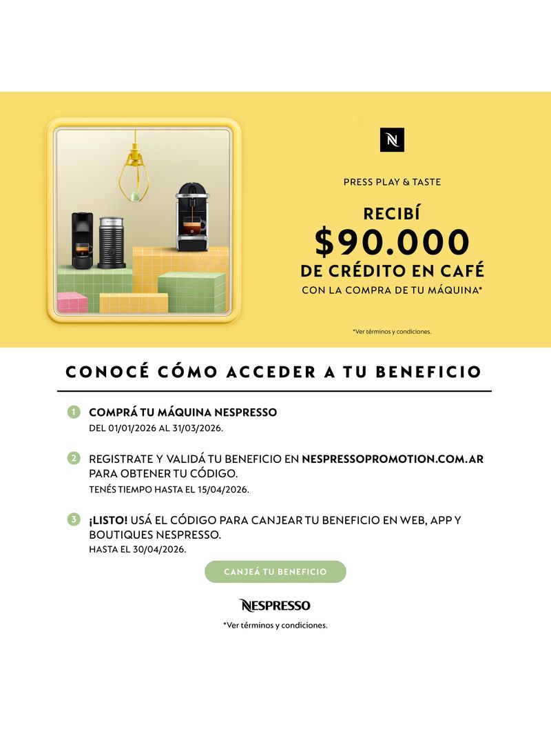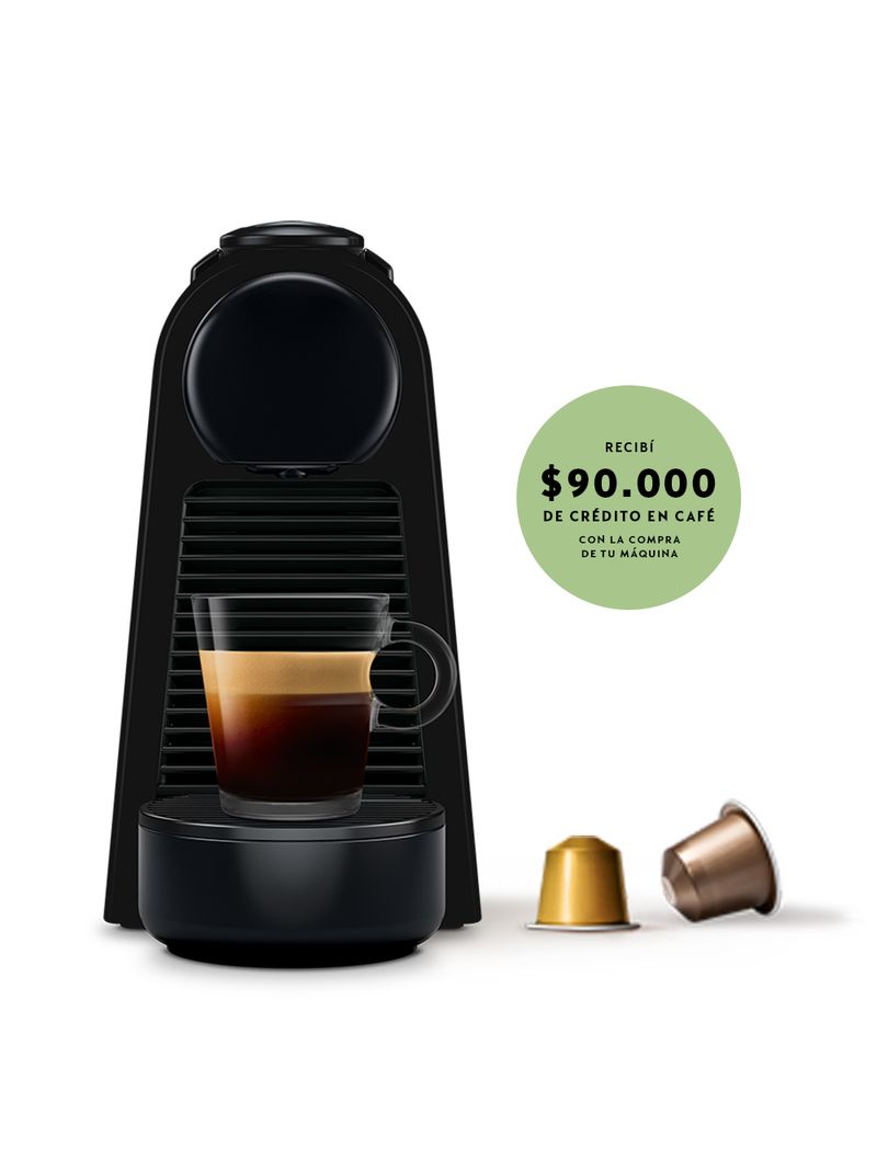 Máquina de café Nespresso Essenza Mini Black. Nespresso ha creado su máquina más compacta hasta el momento sin renunciar a nada: Essenza Mini. La máquina Essenza Mini te permite preparar el café perfecto exactamente como a vos te gusta, con dos tamaños de taza programables. Se adapta a tu estilo y espacio. Una máquina pequeña que abre las puertas al mundo del café Nespresso. Diseño compacto y divertido La máquina Inissia de Nespresso, que se caracteriza por su reducido tamaño, su diseño compacto y ligero y su asa ergonómica, se adapta perfectamente a cualquier configuración interior. Espresso y Lungo Casi no hay que esperar a que la máquina se caliente para seleccionar el café deseado. Con solo pulsar un botón y en 25 segundos, el agua alcanza la temperatura ideal para preparar hasta nueve cafés sin necesidad de rellenar el depósito de 0,7 l. Posee dos botones programables (Espresso y Lungo). Sistema de funcionamiento automático. Presión 19 Bar. Capacidad del tanque 0.6L. Capacidad del contenedor de capsulas: 6 ± 1. Energía eléctrica requerida: 220-240 V, 50/60 Hz.