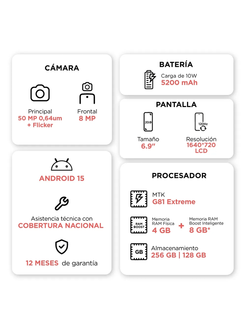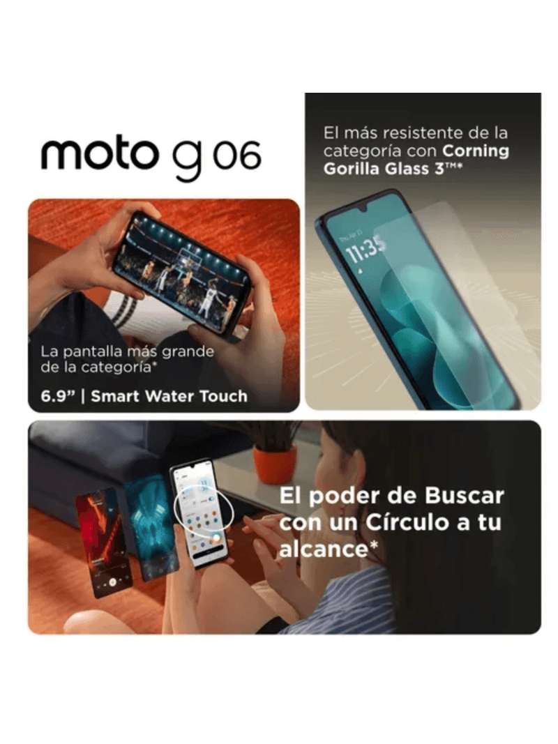 Disfrutá de la pantalla más grande hasta ahora en un moto g, de 6,9 pulgadas, con brillo mejorado para verla en cualquier condición de luz. Sentí el sonido envolvente de sus altavoces estéreo con graves dos veces más potentes y Dolby Atmos®, y experimentá una multitarea fluida con hasta 12 GB de RAM gracias a RAM Boost. Capturá cada momento con su sistema de cámara de 50 MP con inteligencia artificial y aprovechá las herramientas de edición de Google Fotos. Además, contá con la protección IP64, el cristal Corning® Gorilla® Glass 3 y un acabado en cuero vegano premium que combinan resistencia y estilo. Con Circle to Search con Google y una batería de hasta 2 días, hacé más cosas, a tu manera.
