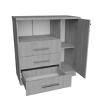 Diseño funcional con 3 cajones espaciosos y 1 puerta para maximizar el almacenamiento