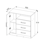 Su diseño incluye tres amplios cajones de suave deslizamiento ideales para ropa y accesorios, y una puerta lateral con estantes internos que brinda espacio extra para mantener todo en orden. Con un tamaño compacto y práctico, es ideal para dormitorios, vestidores o espacios reducidos. Producto desde fábrica tiene una demora de 10 días hábiles.