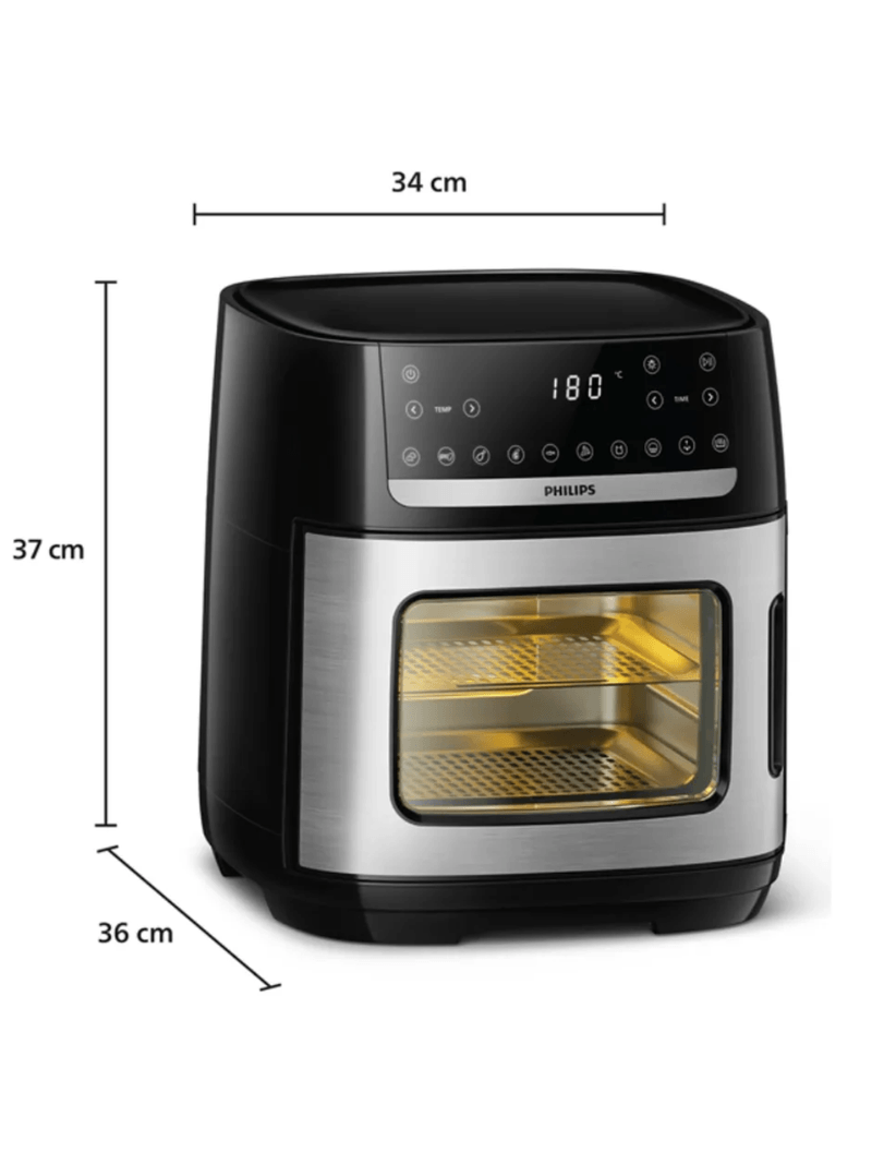 Este horno multifunción Philips Serie 5000 Airfryer está diseñado para ofrecer máxima versatilidad en la cocina. Con su capacidad extragrande de 12 litros y tecnología de circulación de aire caliente, permite preparar recetas crujientes por fuera y tiernas por dentro, utilizando poco o nada de aceite.