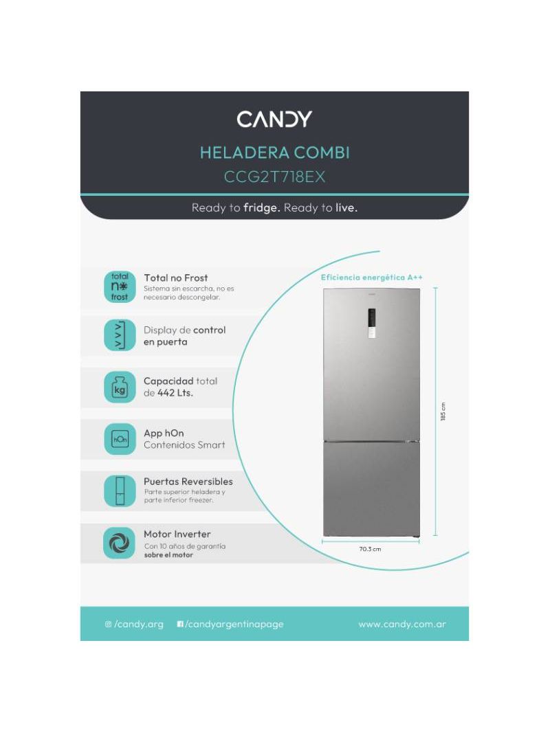 Combina heladera en la parte superior y freezer en la parte inferior, una solución inteligente para cubrir todas tus necesidades diarias. Gran conservación de los alimentos El compartimento Heladera, garantiza el máximo rendimiento. Sus estantes y cajones brindan las condiciones perfectas de enfriamiento. Los estantes interiores de vidrio son resistentes y fáciles de limpiar. Total No Frost Este sistema produce aire frío en la zona del congelador y lo distribuye de forma uniforme en la heladera con la ayuda de múltiples inyectores desde el panel No Frost. Consiguiendo que la temperatura y la humedad permanezcan constantes y, por lo tanto, manteniendo los alimentos más sabrosos y frescos durante más tiempo. El sistema Total No Frost no produce escarcha, por lo tanto, no es necesario descongelarlo. Experiencia de usuario intuitiva Gracias al display control ubicado en la puerta superior, podes ajustar la temperatura de tu heladera de manera muy simple.