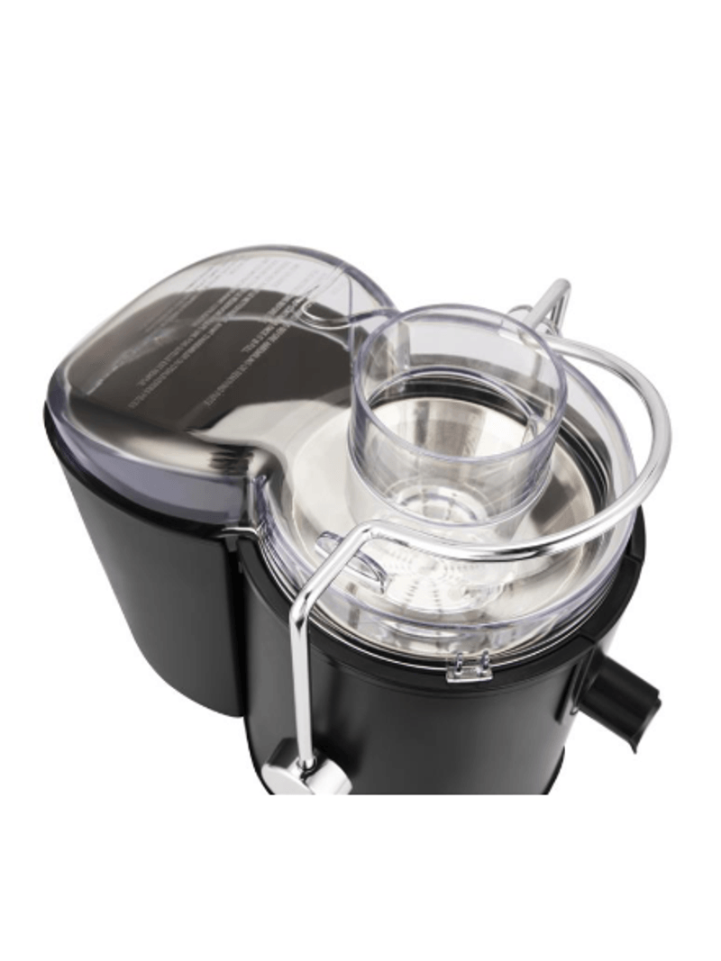 Juguera Negra 94JUPH21BP Negro Extrae jugo de frutas y verduras sin cortar. Potencia 400w Selector de 2 Velocidades Filtro desmontable y lavable Proteccion de tapa y cerradura para uso seguro Accesorio Colector de Pulpa Hoja y Filtro de Acero Inoxidable Dimensiones:284x292x193mm Peso: 2.2 Kg *