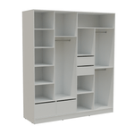Dispone de 4 cajones internos con correderas metálicas, 13 estantes y 3 espacios para colgar, ofreciendo una excelente distribución para prendas, calzado y accesorios. Su gran capacidad lo convierte en la opción perfecta para dormitorios que buscan orden y estilo.