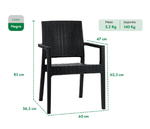 Su diseño ergonómico y apilable permite un fácil almacenamiento, ideal para jardines, terrazas, balcones y espacios exteriores en general.