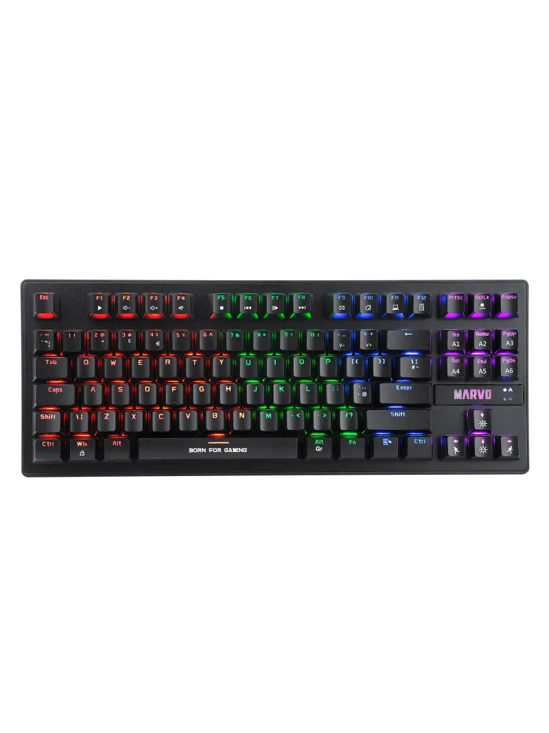 "TECLAS: 87TIPO DE INTERRUPTOR: mecánico (azul)CLASIFICACIÓN DE INTERRUPTORES: = 50 millones de prensasRUTA CLAVE: 3,8 ± 0,4 mmFUERZA DE OPERACIÓN: 60 ± 10 gRETROILUMINACIÓN: Arco iris de 6 coloresINTERFAZ: USB 2.0LONGITUD DEL CABLE: 1.6 mSOPORTE DEL SISTEMA OPERATIVO: Windows 7 o más nuevoORIGEN China"