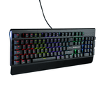 "Características principales:Tipo de teclado: Mecánico con switches Blue de alta durabilidad (50 millones de pulsaciones)Cantidad de teclas: 104 teclas con diseño españolFunción antighosting: Sí, hasta 26 teclas simultáneasTeclas multimedia: FN + F1–F12 para control rápido de tu música y funcionesIluminación RGB: Rainbow con 9 modos personalizables, para un setup impactanteCarcasa: Superior e inferior metálica, resistente y duraderaPlug & Play: Conéctalo y empieza a usarlo al instante, sin drivers adicionalesCable: 1.5 m, seguro y flexible para comodidad en el escritorioUso recomendado: Gaming competitivo, oficina, productividad y tareas diariasBeneficios que vas a notar:Escribir y jugar con precisión absoluta gracias a su tecnología mecánica.Durabilidad extendida con materiales robustos y switches de larga vida.Estilo único con iluminación Rainbow que se adapta a tu setup.Funcionalidad inmediata con Plug & Play, sin complicaciones de instalación.¡Haz que tu experiencia de juego y productividad sea profesional!"