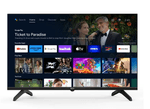 Android TV v11 con interfaz intuitiva y acceso a Google Play.